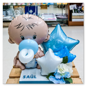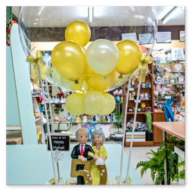 básica se suele componer de un pequeño ramo de globos de helio sujetos a