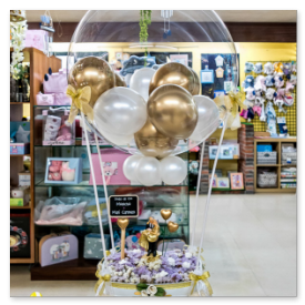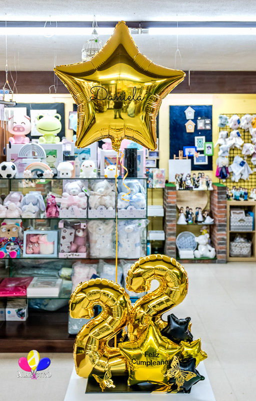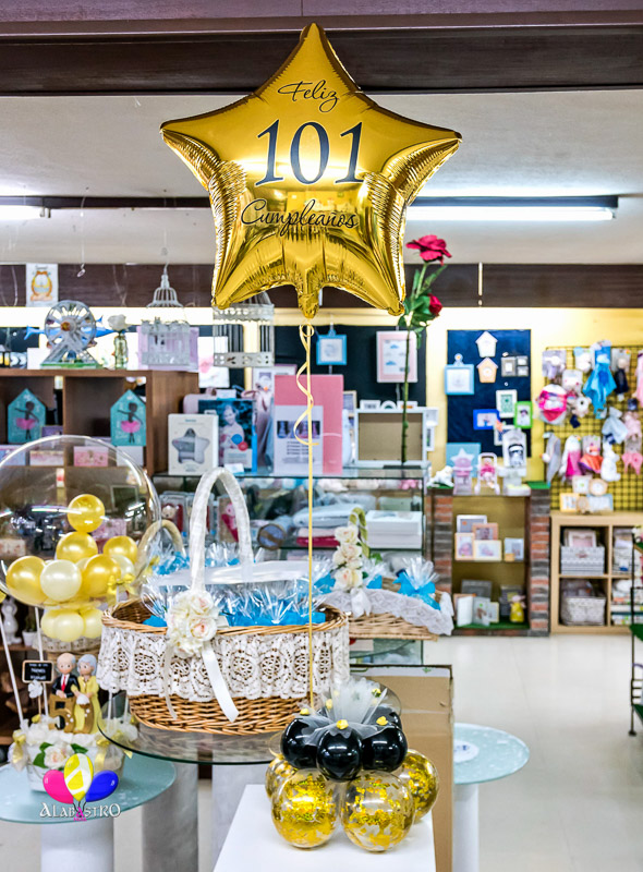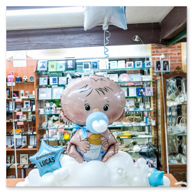 básica se suele componer de un pequeño ramo de globos de helio sujetos a