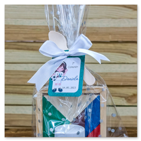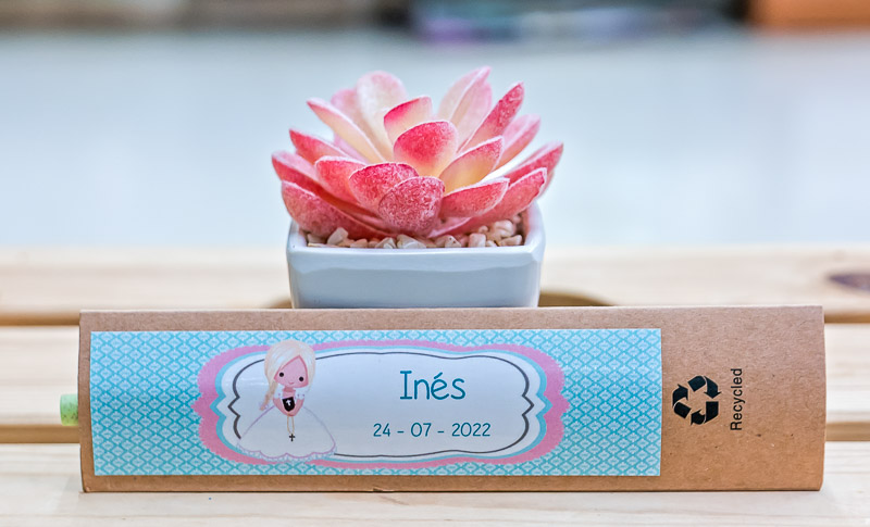 personalizar tus detalles para invitados de comunión con un diseño hecho